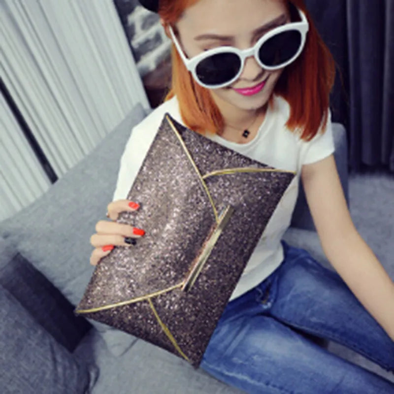 Glitter Sequins Handbags Women Evening Party Envelope Handbag