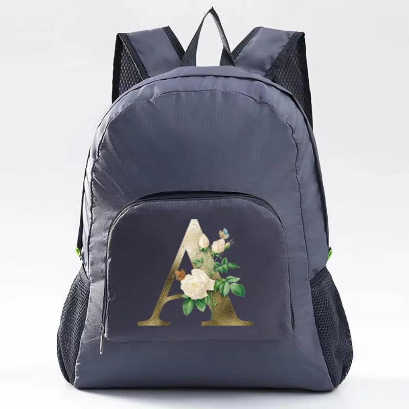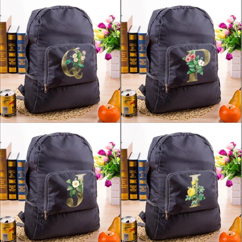 Golden Flower Letter A~Z Print Foldable Travel Backpack Lightweight Bag