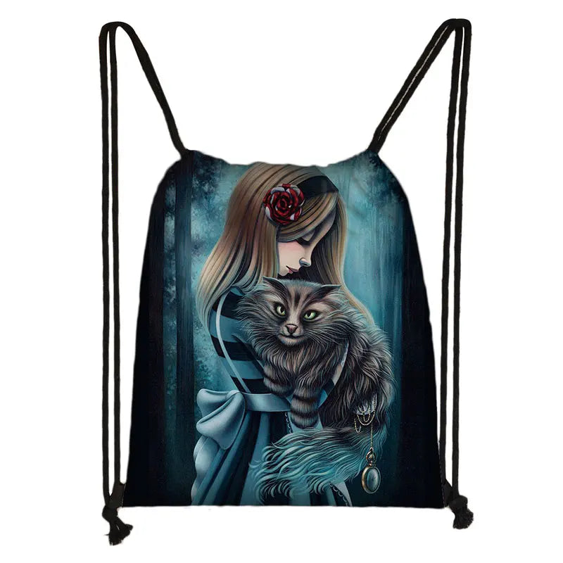 Gothic Girls Drawstring Backpack Women Canvas Bag