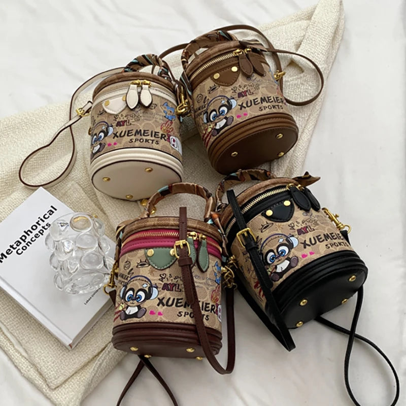 Graffiti Cylindrical Bag Women's Crossbody Shoulder Purses PU Leather