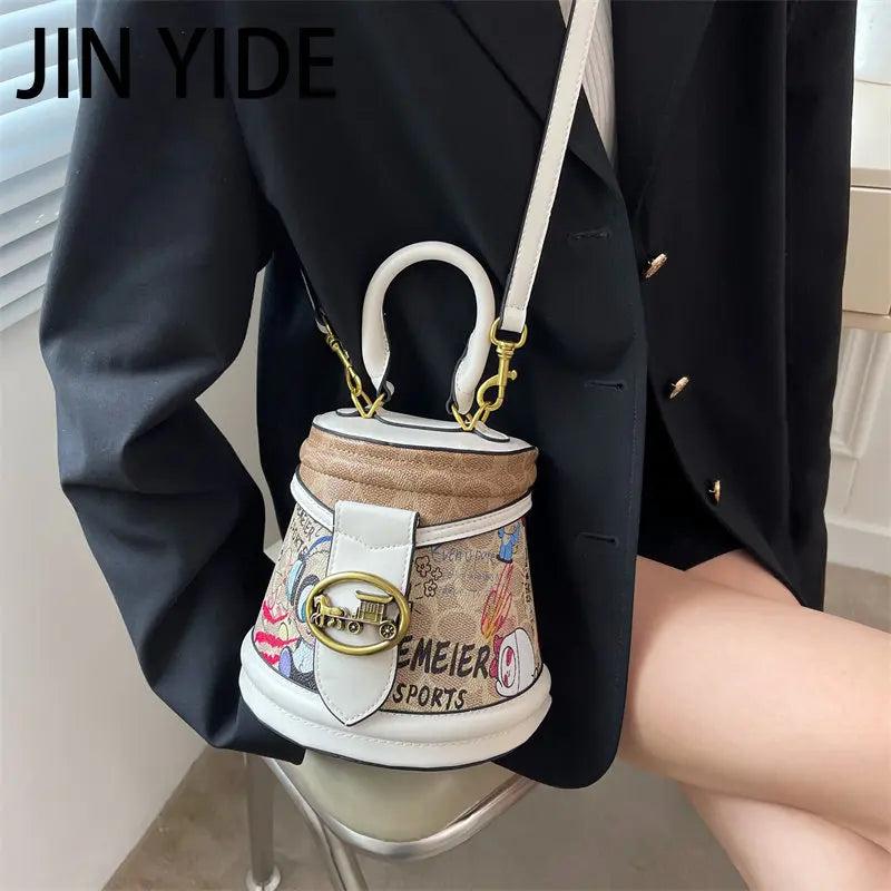 This stylish Horseshoe bag is made of high-quality leather, perfect for women. It features graffiti design, shoulder straps, and crossbody functionality.