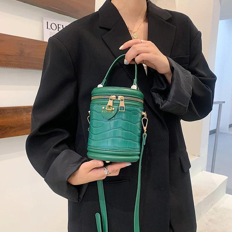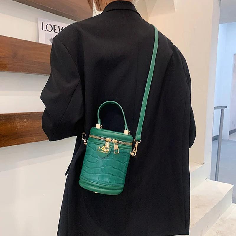 Green Brown Bucket Bag Messenger Purse Circular Shoulder Bags