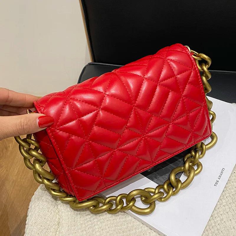 This stylish shoulder bag features soft PU leather and a thick chain design, perfect for adding a touch of glam to any outfit. The high-quality material ensures durability and longevity.