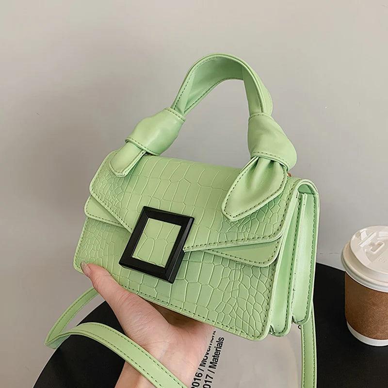 Green Crocodile Leather Flap Square Bag Shoulder Crossbody Handbag Purse