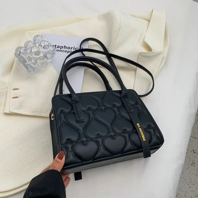 This stylish green messenger shoulder bag is perfect for women who love unique designs. It features a heart pattern and is suitable for various occasions.