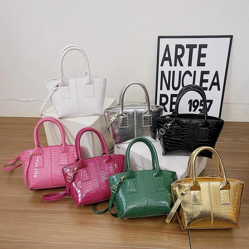 Elevate your party look with this chic and stylish green patent leather shoulder bag. The perfect accessory for any occasion.