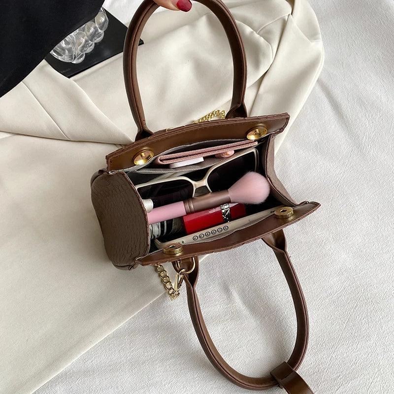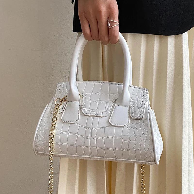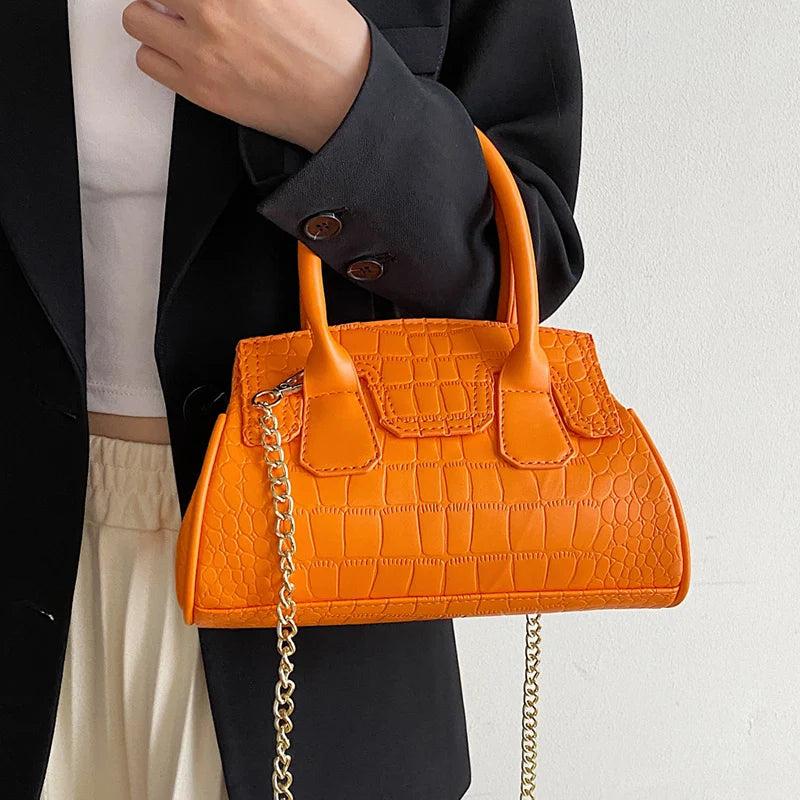 Elegant and stylish stone pattern PU leather handbag perfect for parties and events. Can be used as a clutch or crossbody bag with a chain strap.