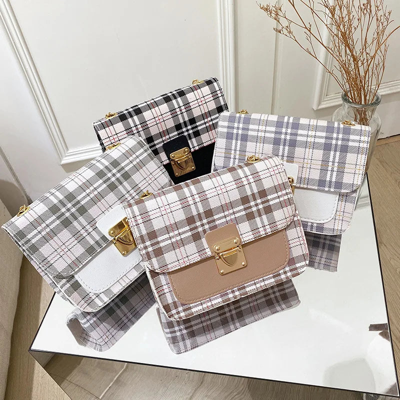 Grid Women Small Square Shoulder Bag Chain Mobile Phone Satchel
