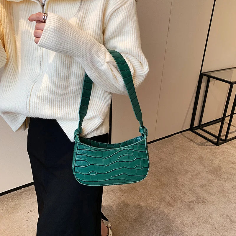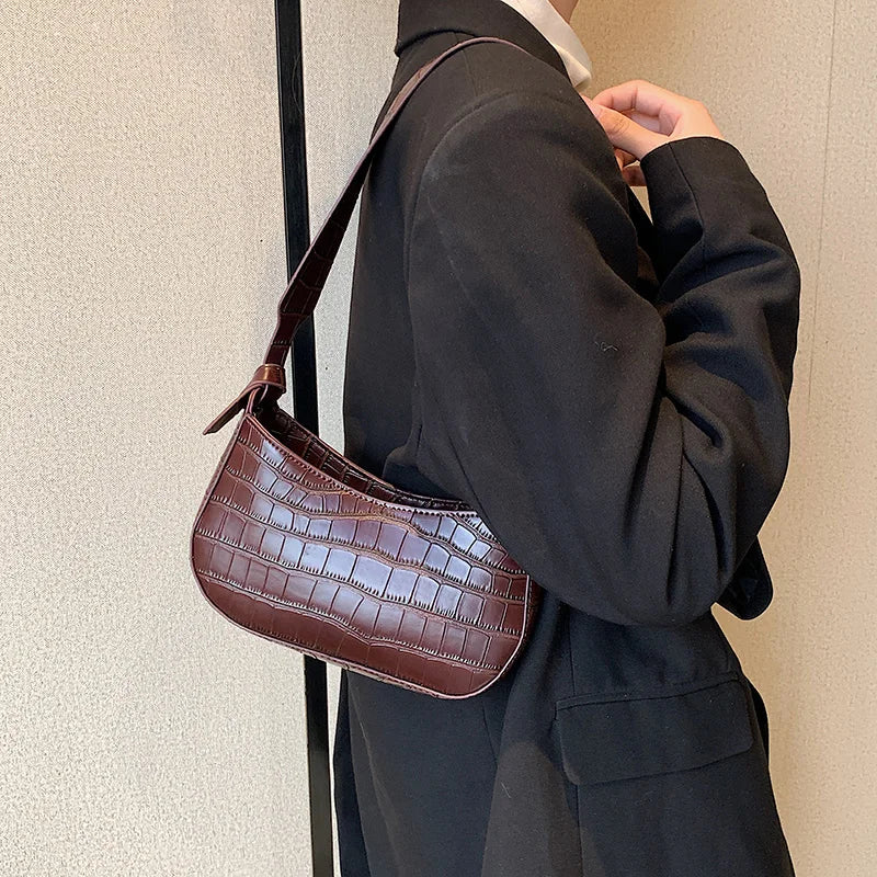 This stylish women's shoulder bag is crafted from high-quality leather, perfect for everyday use. It features a half moon shape and a comfortable underarm design.