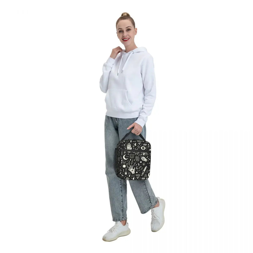 Be prepared for Halloween with this stylish insulated lunch bag featuring a witchcraft design. Perfect for women who embrace the occult and magic.