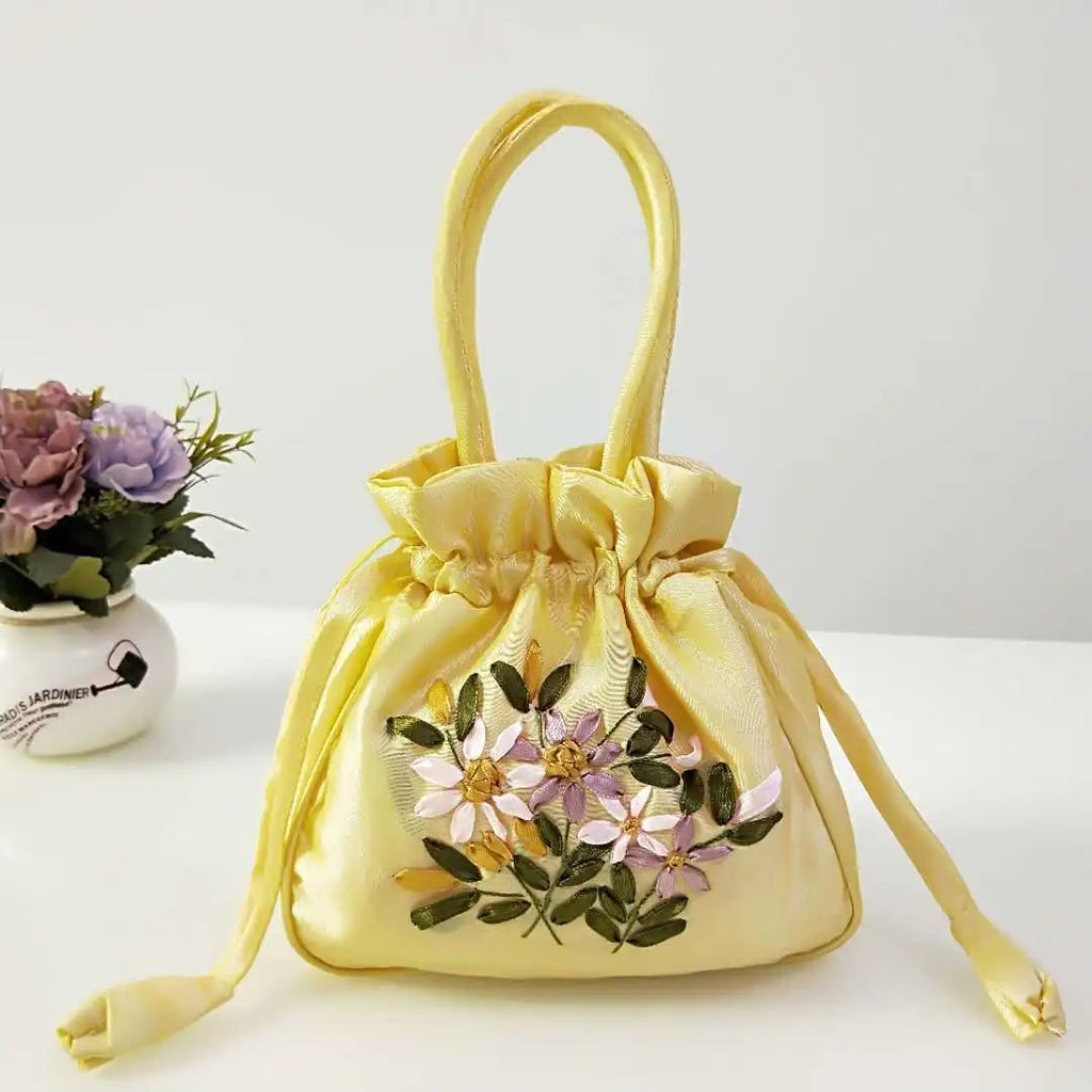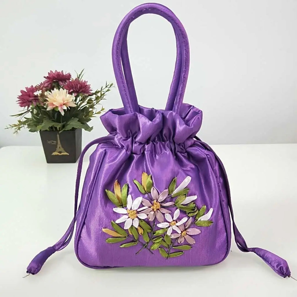 Elevate your look with these women's hand-embroidered silk handbags featuring an ethnic style design. Perfect for special occasions or adding a unique touch to your outfit.