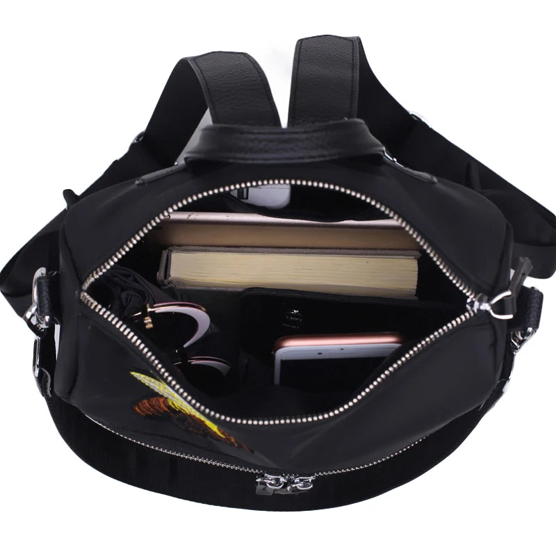 These backpacks feature beautiful handmade embroidery flowers, suitable for teen girls. Made from waterproof nylon, these female backpacks are perfect for school and everyday use.