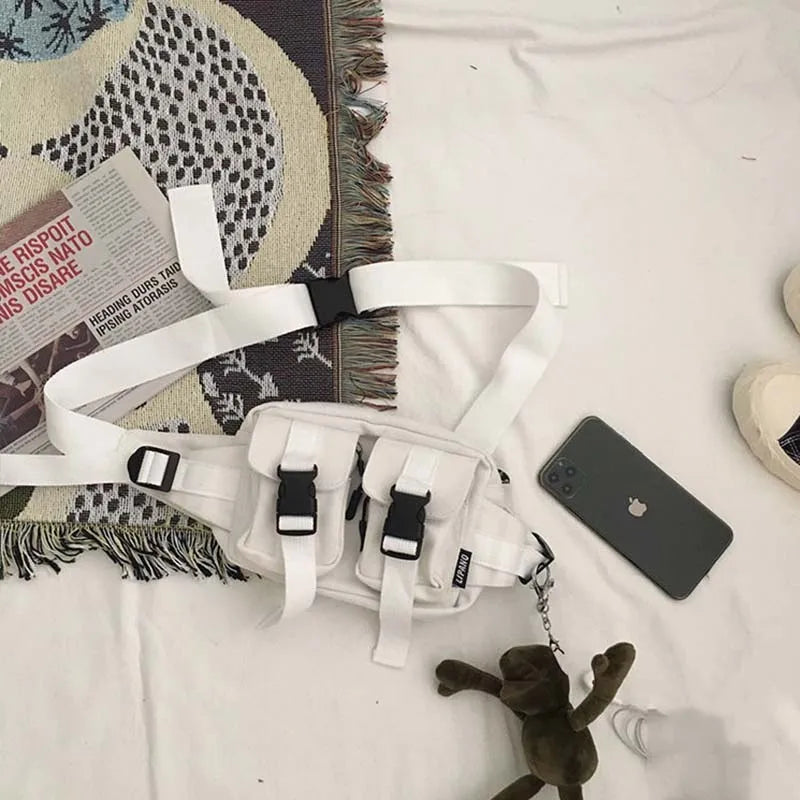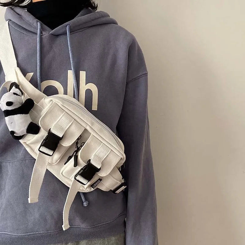 Harajuku Cross Body Canvas Bag Pockets Students Fanny Pack