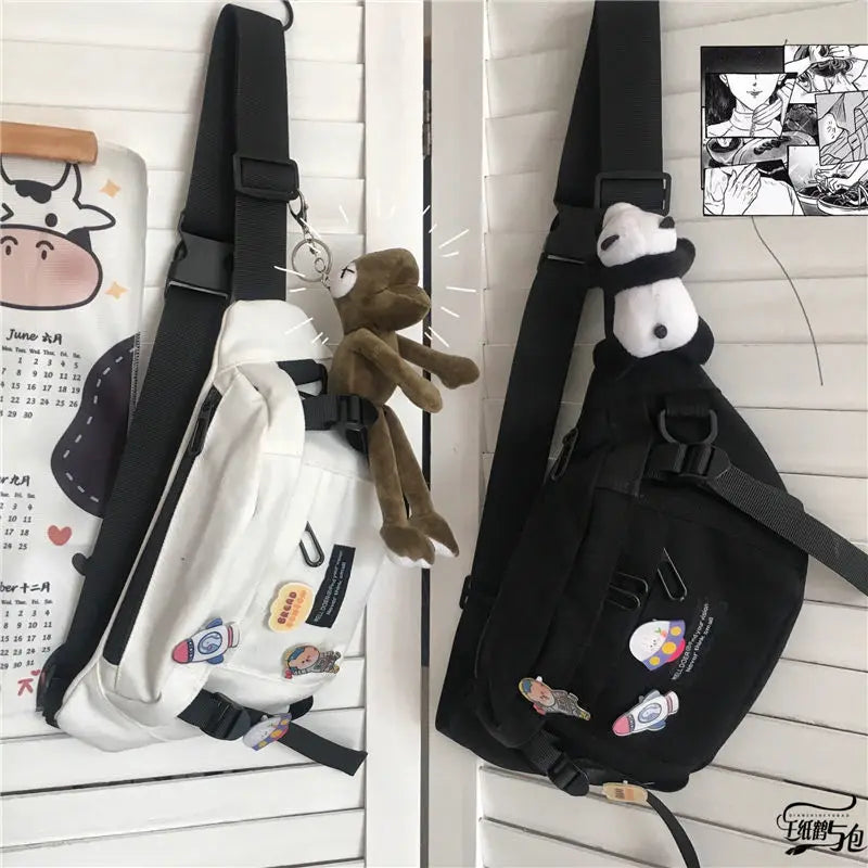 Japanese series messenger chest bag perfect for students. Versatile for riding and everyday use. Ideal for both men and women.