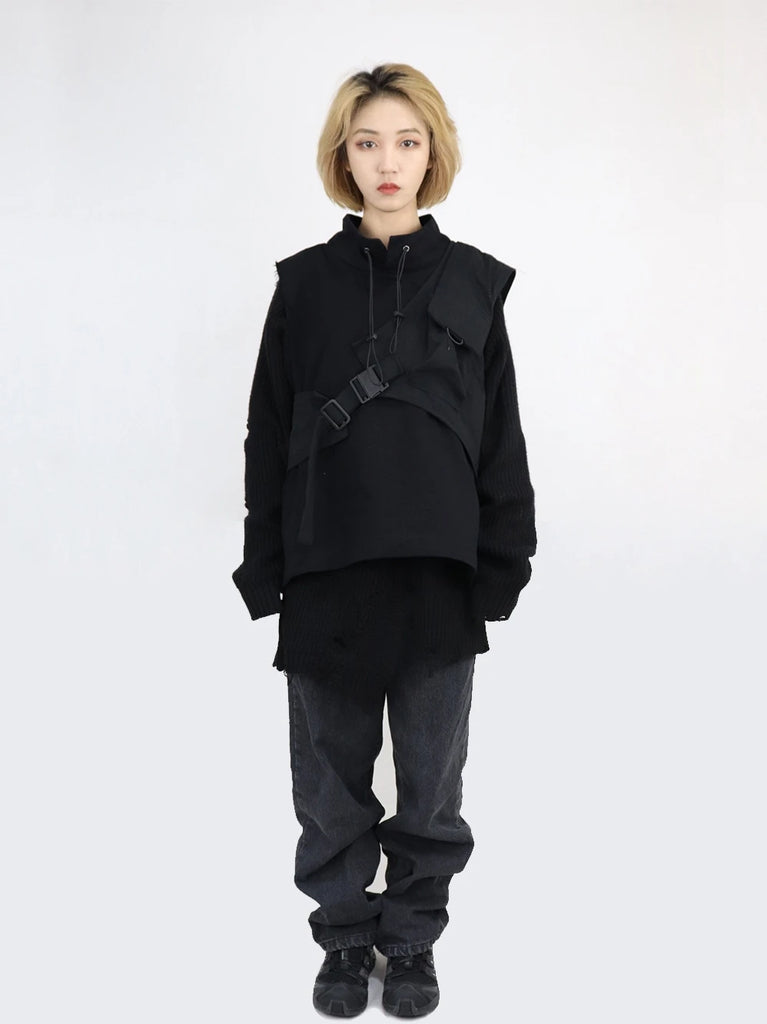 This streetwear tactical vest is a must-have accessory with a detachable design. Perfect for men and women who love the rock look.