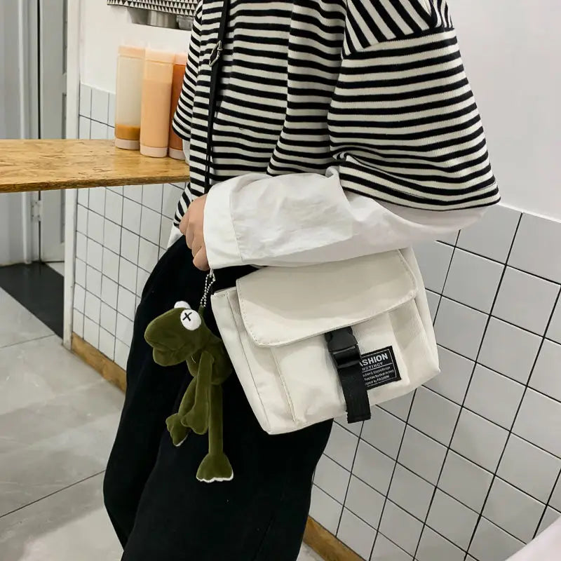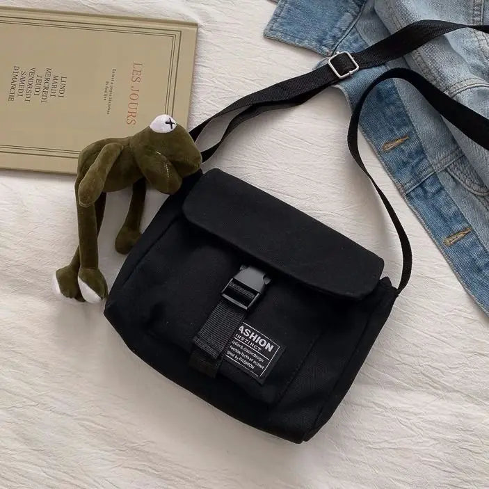 This Harajuku canvas small bag is a stylish messenger bag perfect for ladies. It's designed in a vertical shape and is great for everyday use.