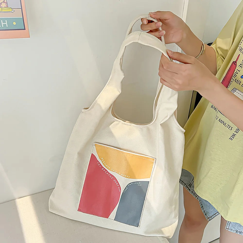 Stay trendy with this Harajuku style shoulder bag featuring a large capacity and contrast canvas design. Perfect for shopping and everyday use.