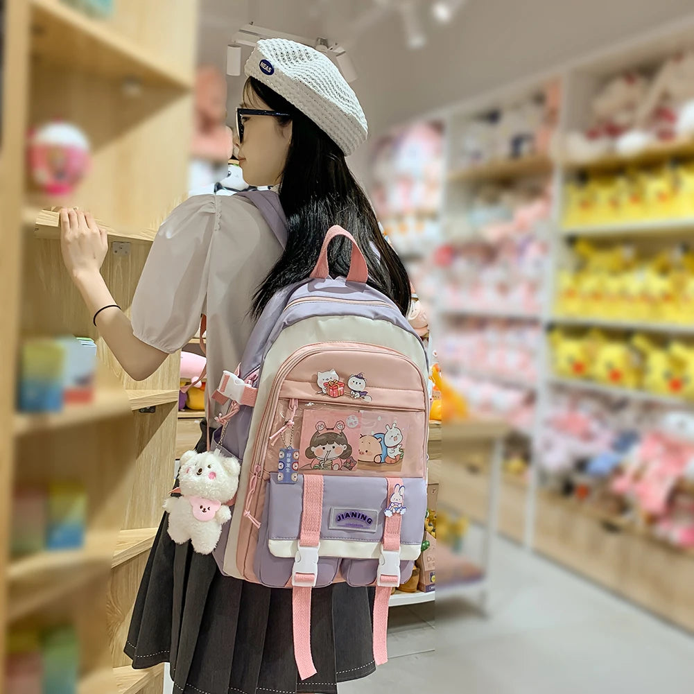 Harajuku Women Backpack Multi-Pocket Nylon School Bag Large-capacity