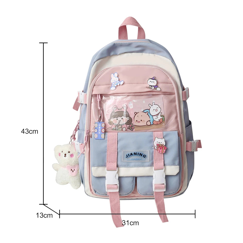 Description:This stylish Harajuku women's backpack is made of durable nylon material with multiple pockets, perfect for students and travelers. It can comfortably fit a laptop and books.Features: Durable nylon material Large-capacity with multiple pockets Ideal for students and travelers Fits laptop and books Stylish Harajuku design This product may be...