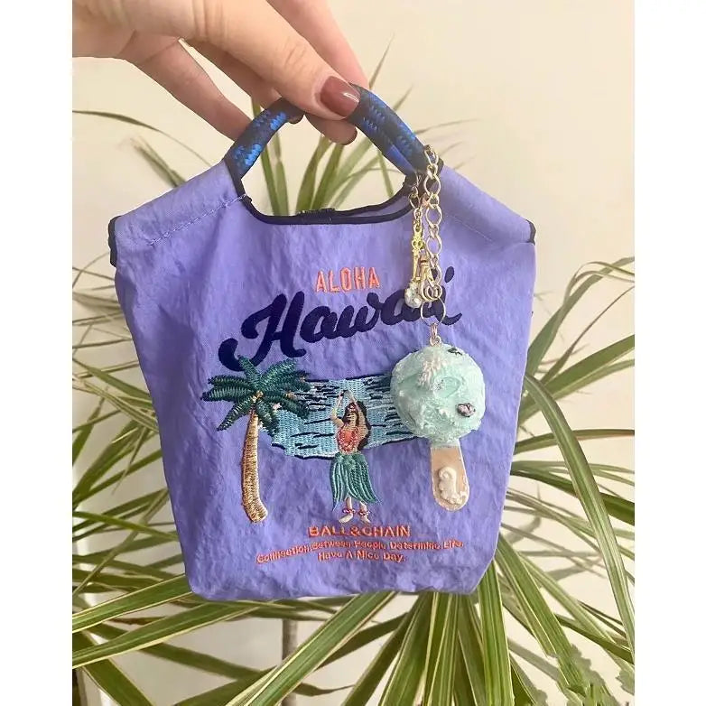 Hawaiian Vacation Embroidered Mini Bag Cartoon Tote Eco-Friendly Nylon Pouch
