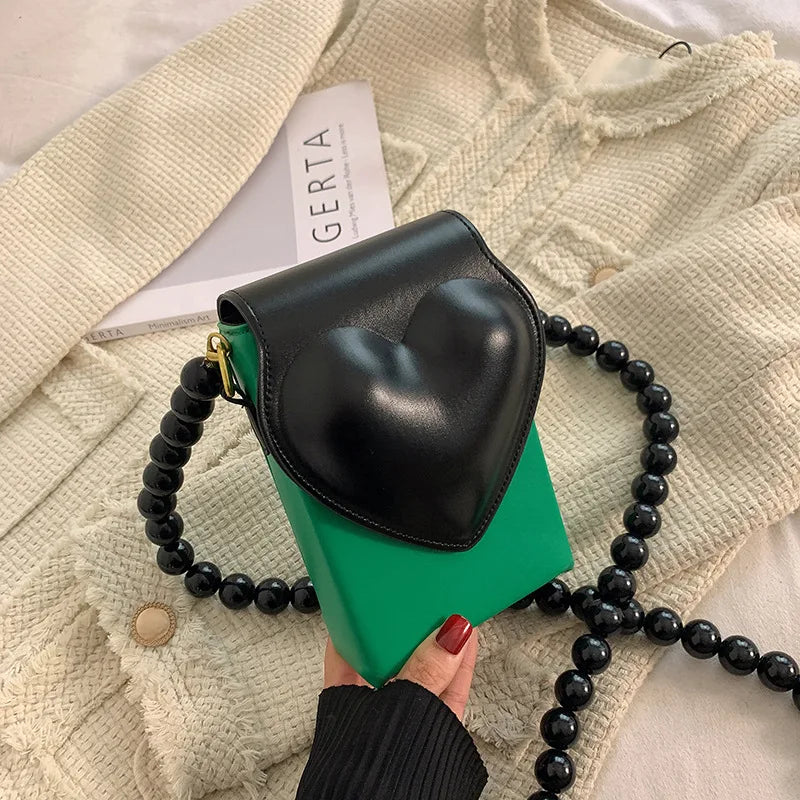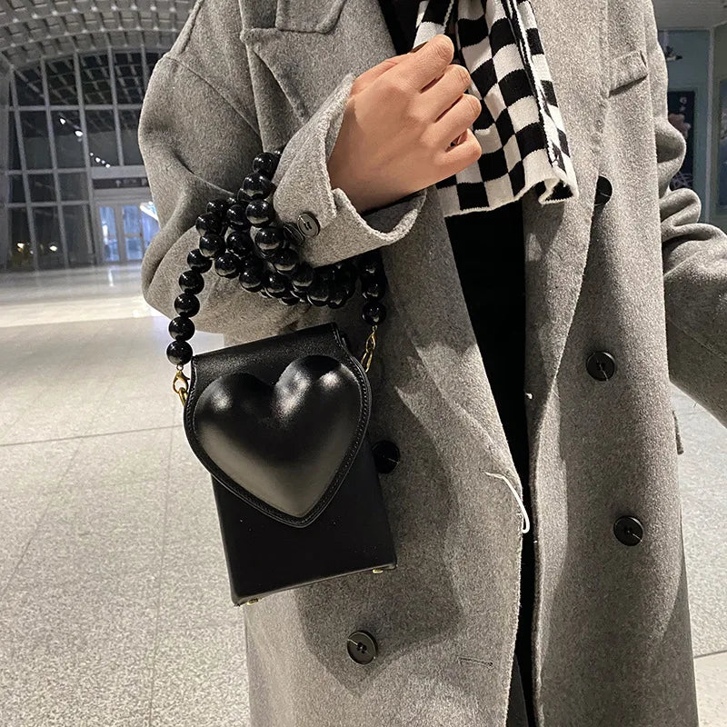 Elegant heart shaped purse with intricate beadwork, perfect for any occasion. Can be worn as a crossbody bag or clutch.