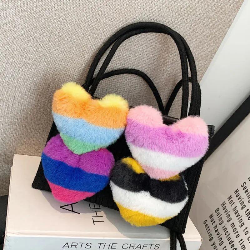 - Heart-shaped fluffy tote bag for women