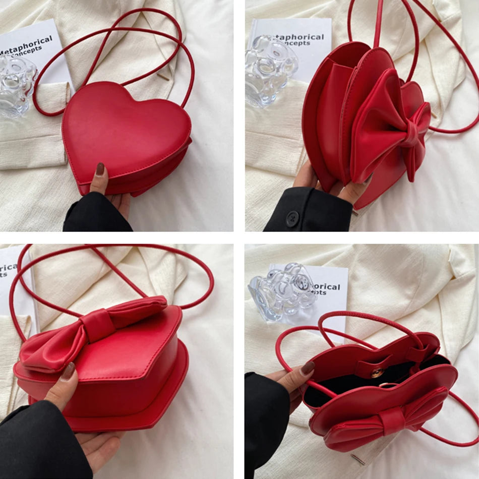 Heart-shaped Shoulder Bag Bow Lady Crossbody PU Leather Handbags