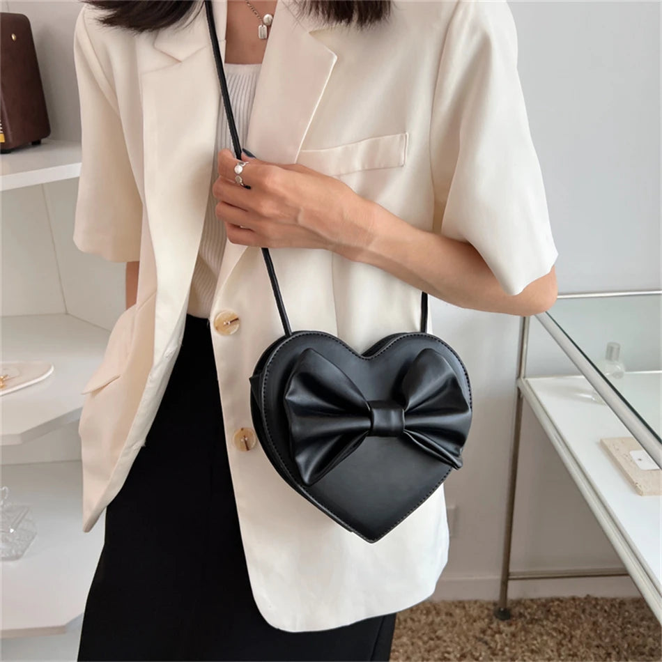 This mini heart-shaped shoulder bag is a trendy accessory for women. Made of high-quality PU leather, it features a bow design and is perfect for carrying essentials.