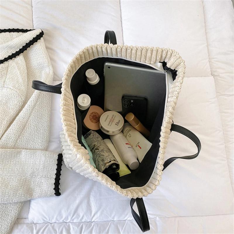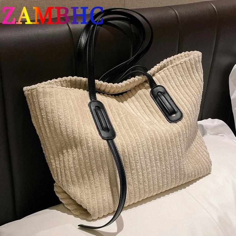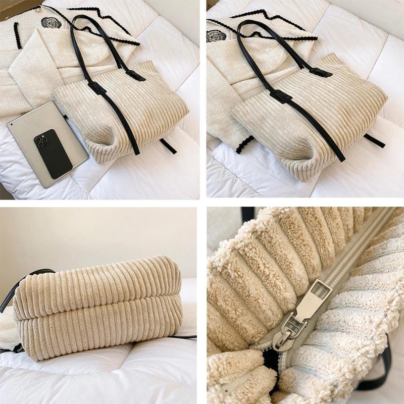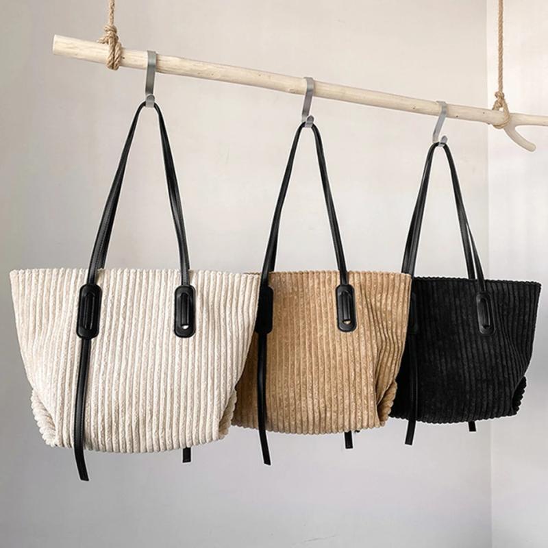 Stay stylish and organized with this large capacity women's shopper bag made of high-quality corduroy. Perfect for travel or daily use.