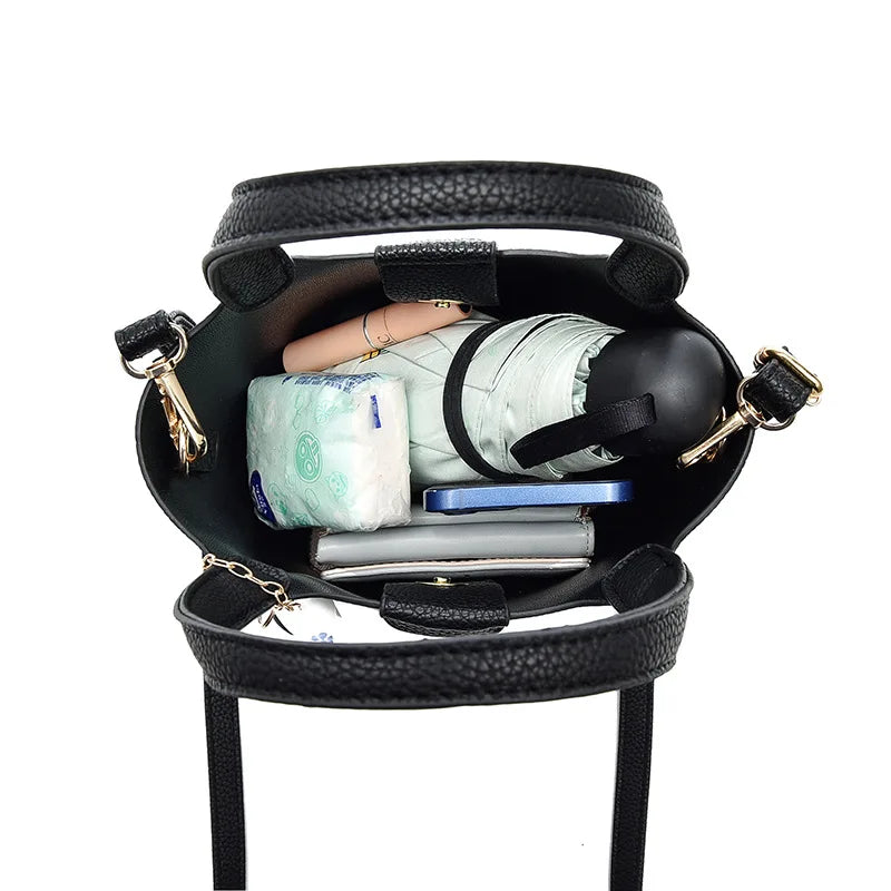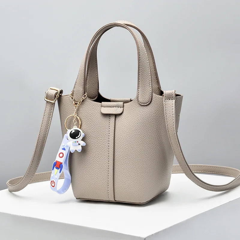 High-end Lychee Pattern Bucket Bag for Women