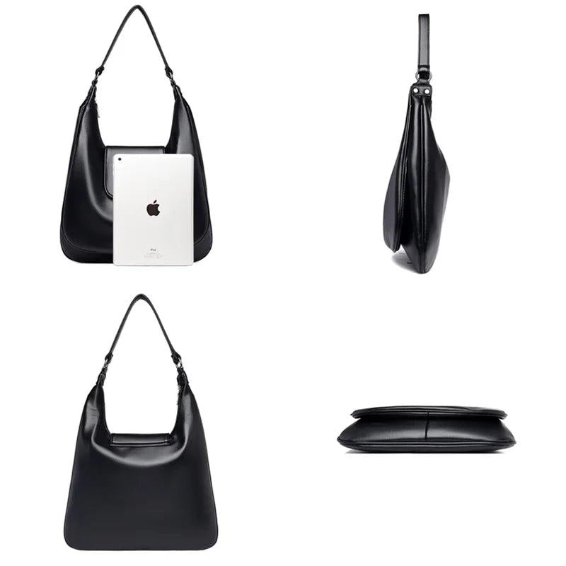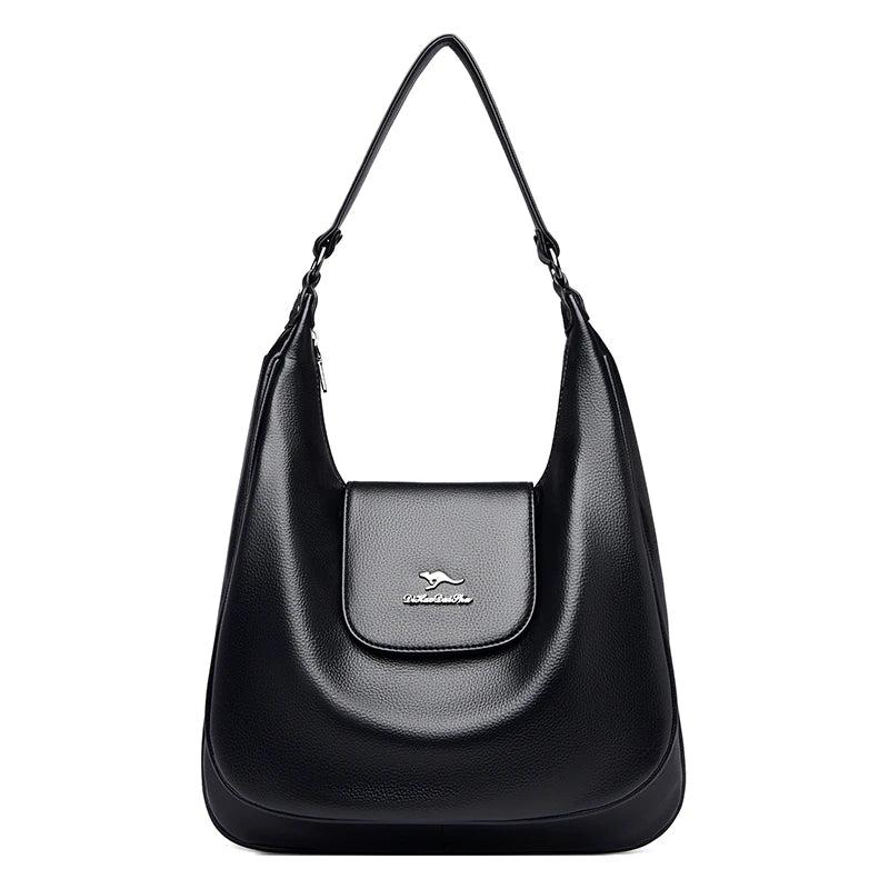 Elegant and durable leather handbag suitable for casual outings. High capacity tote bag with a comfortable shoulder strap for women.