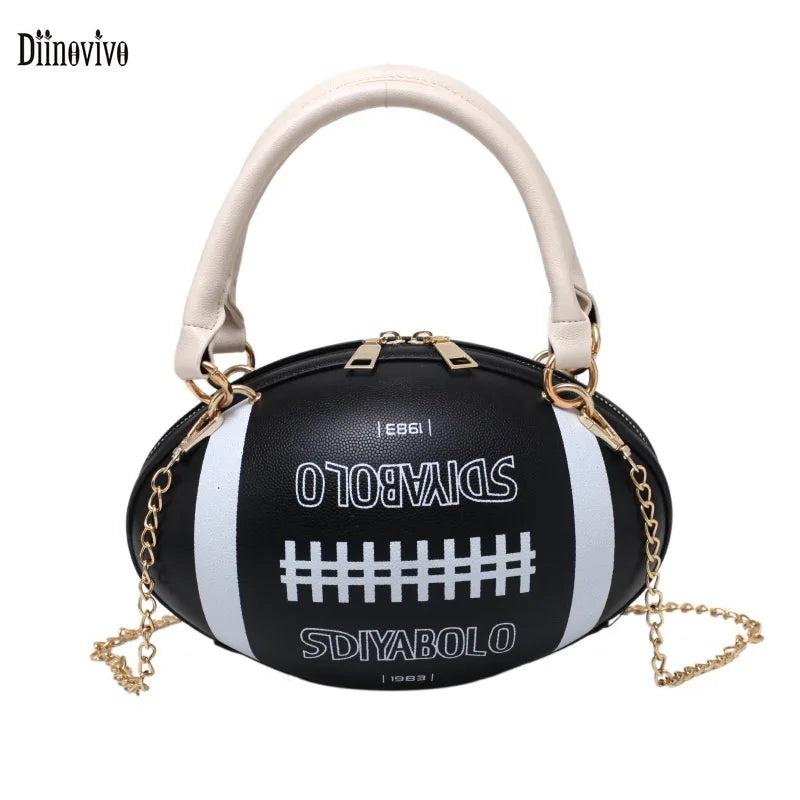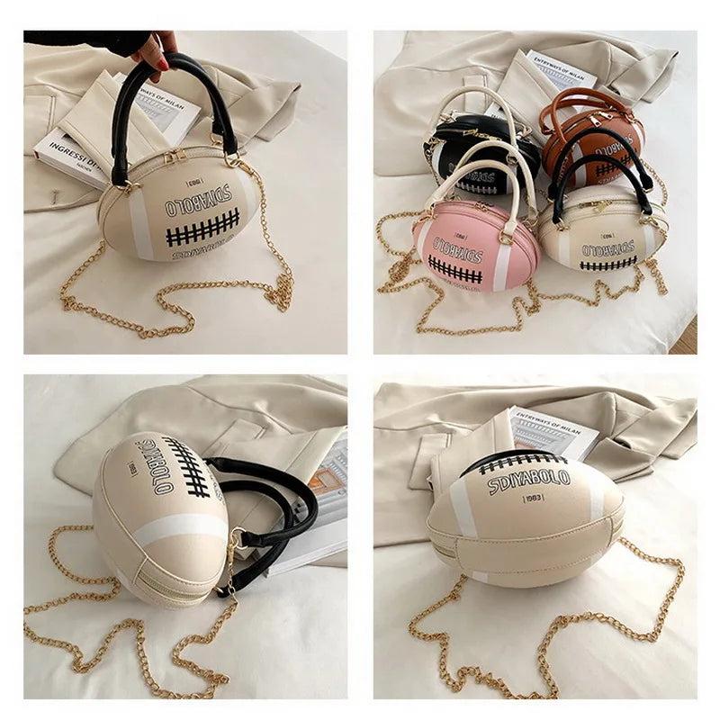 Hip-Hop Chain Crossbody Bag Funny Rugby Barrel-Shape Ladies Shoulder Bags