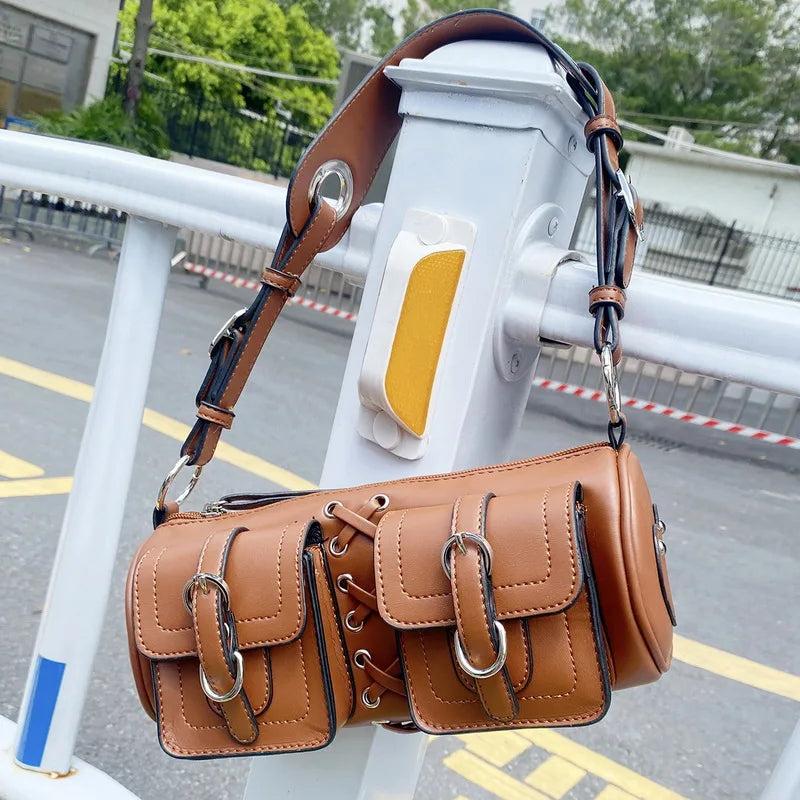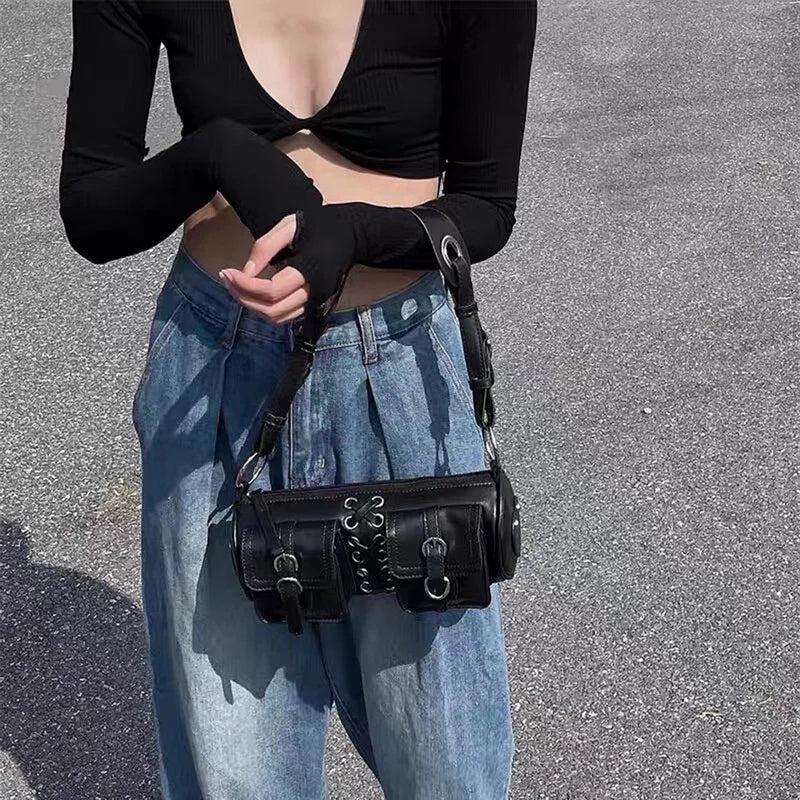 This trendy women's shoulder bag features a hip-hop style pocket design, made of high-quality PU leather, ideal for girls.