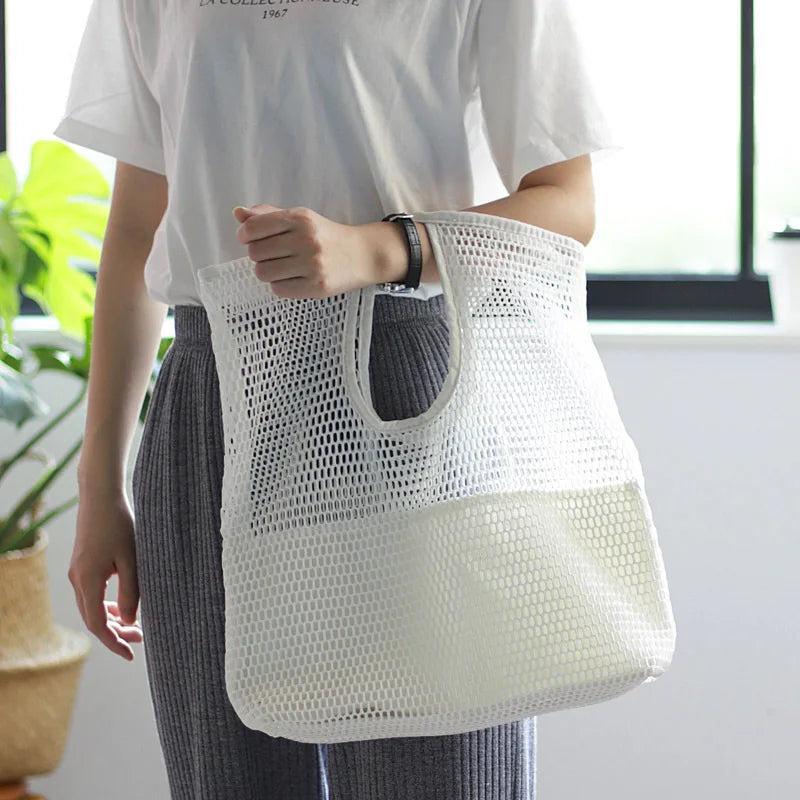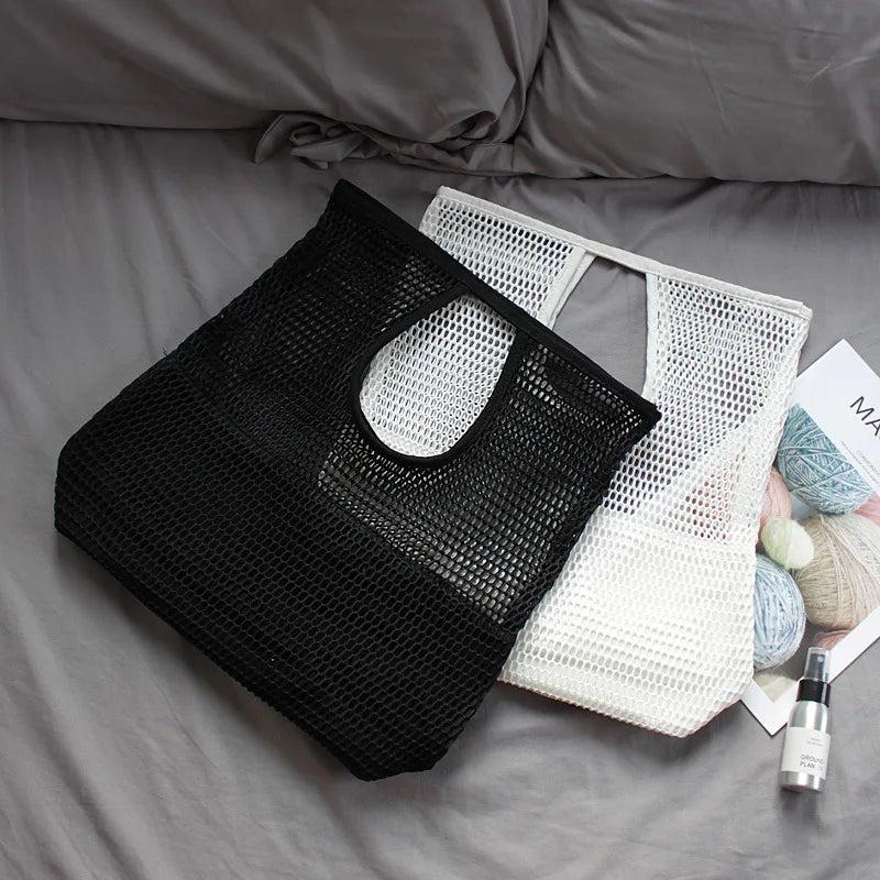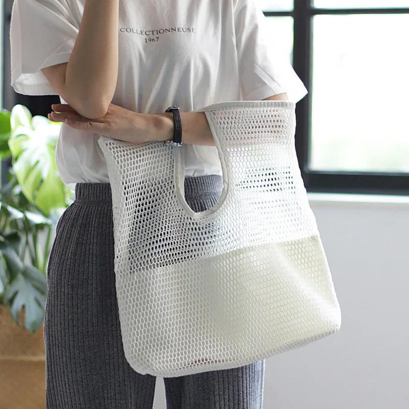 This stylish women's handbag features a hollow mesh design, perfect for shopping or a day out. The fishing net style adds a unique touch to your outfit.