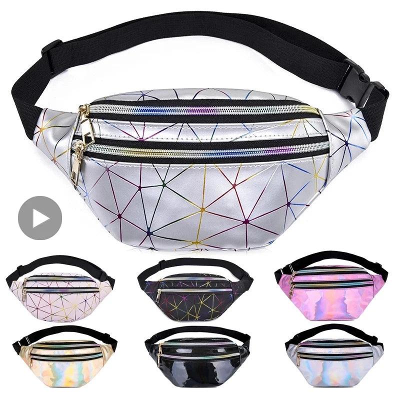 Holographic PU Leather Fanny Pack Waist Bag Men Women Belt Hip Handbag