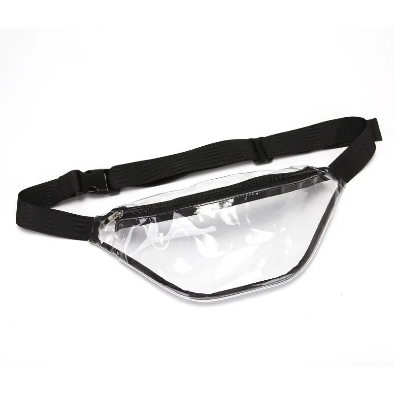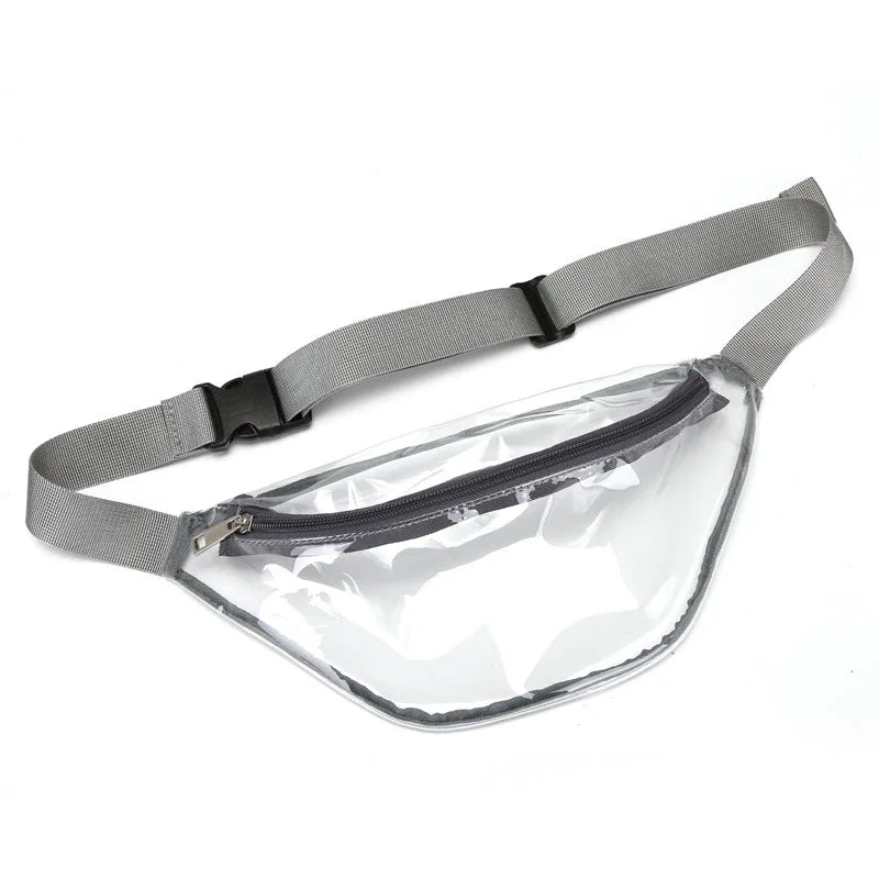 Stay stylish and secure with this holographic waist bag. Made from transparent PVC material, it features a shiny pink and silver design. Perfect for carrying your phone, keys, and other essentials while on the go.