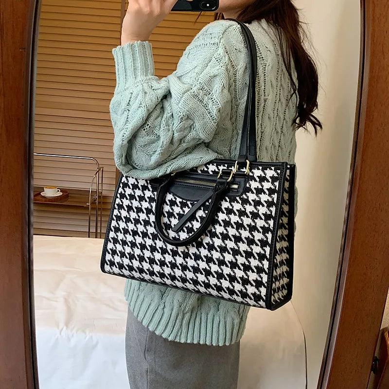 Houndstooth Casual Tote Bag Large Shoulder Female Handbag SG246