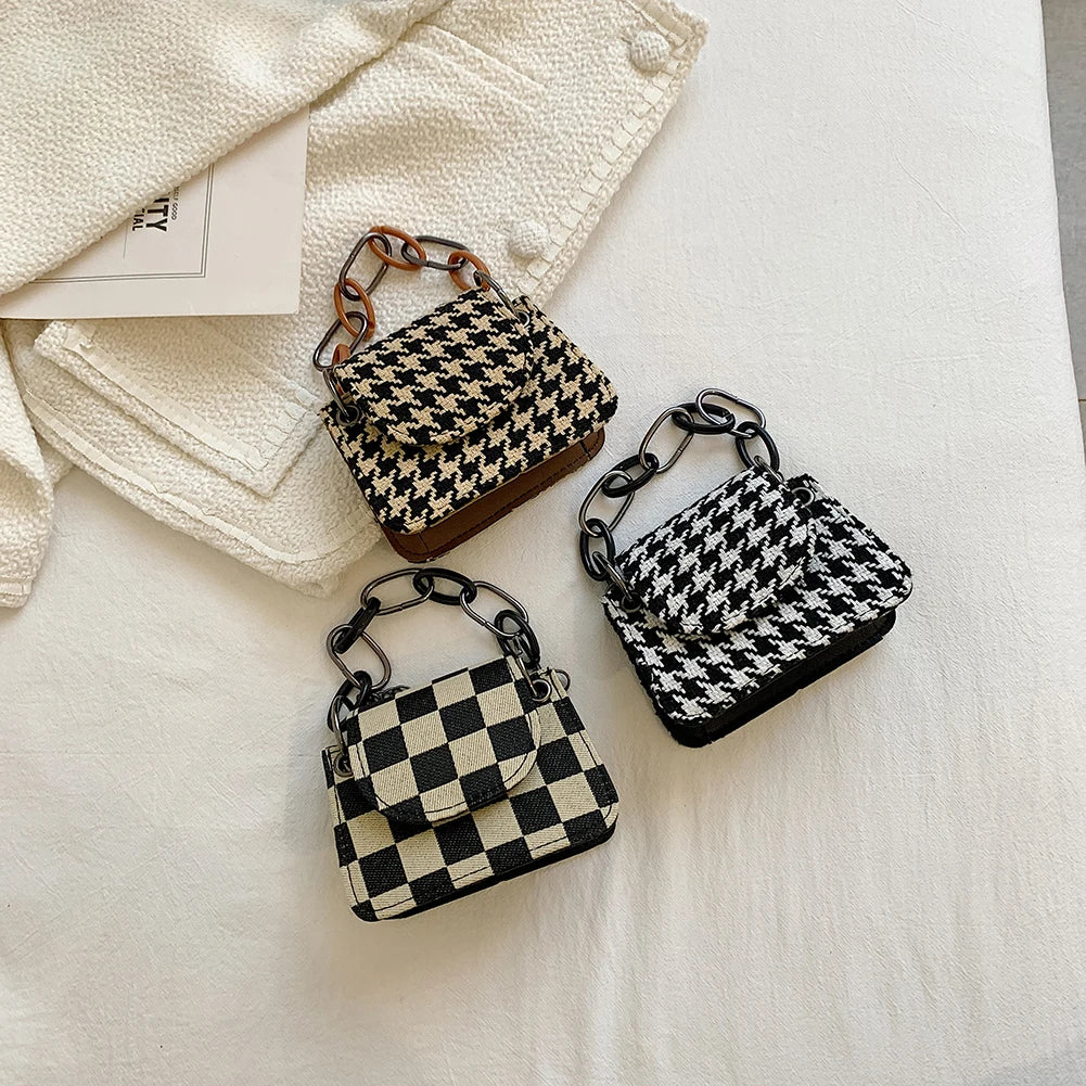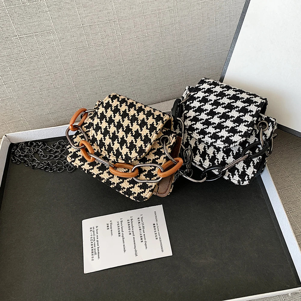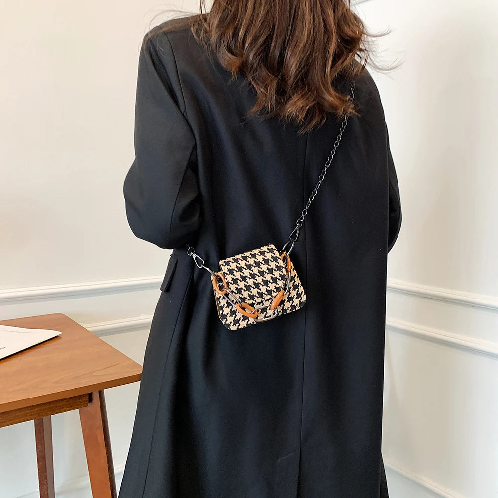 Houndstooth Pattern Woolen Cloth Shoulder Bag for Women