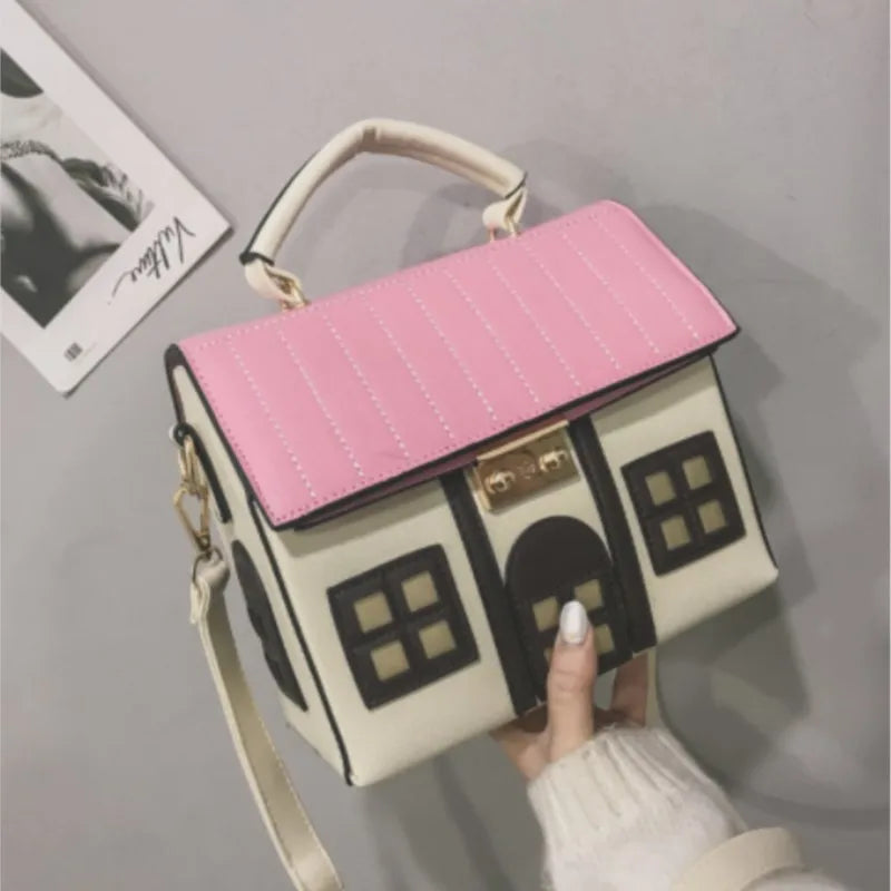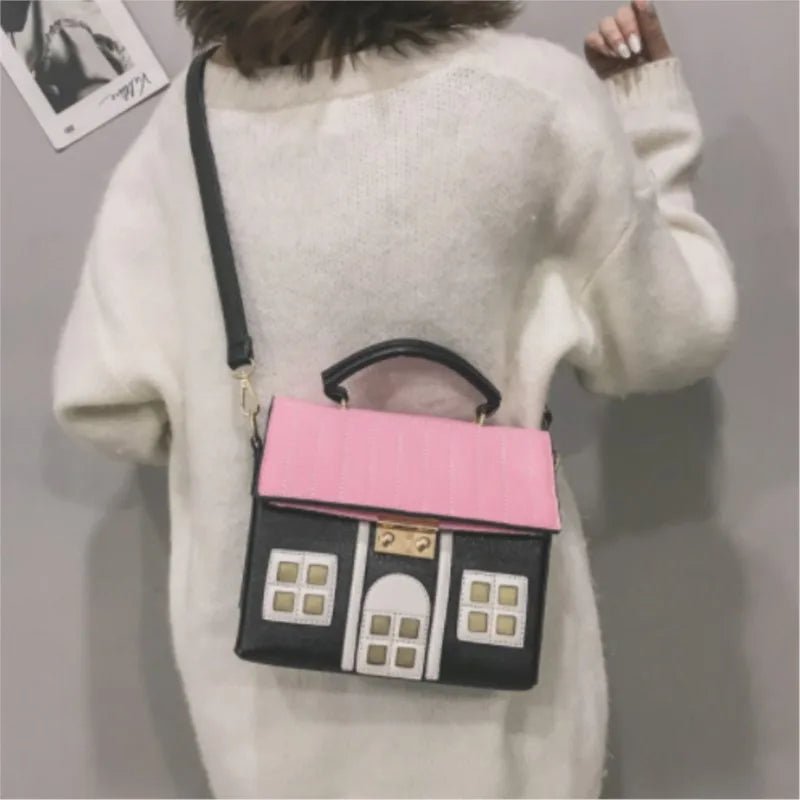 Add a touch of whimsy to your style with this creative house-shaped handbag. Made of high-quality PU leather, it's perfect for everyday use.