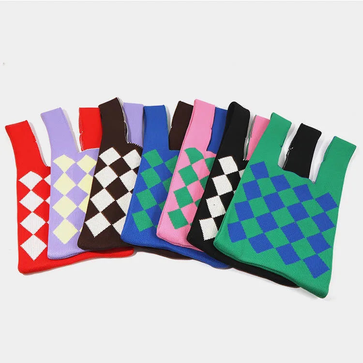 Ins Rhombus Knitted Women Handbag Diamond Lattice Tote Bag