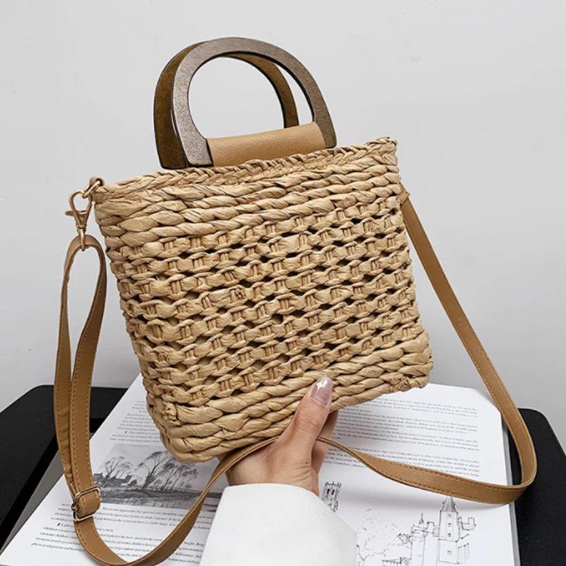 This messenger bag is a stylish and functional accessory for women. Handwoven with straw, it exudes a beach-ready vibe.