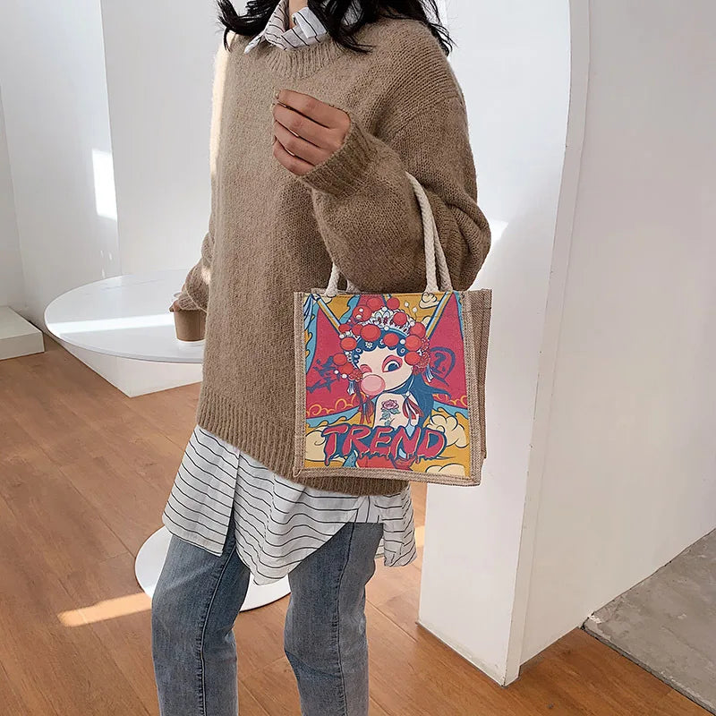 This Japanese canvas bag is perfect for the autumn and winter seasons. It features a crossbody design and is ideal for women who prefer a small tote bag. Stay stylish and practical with this versatile handbag.