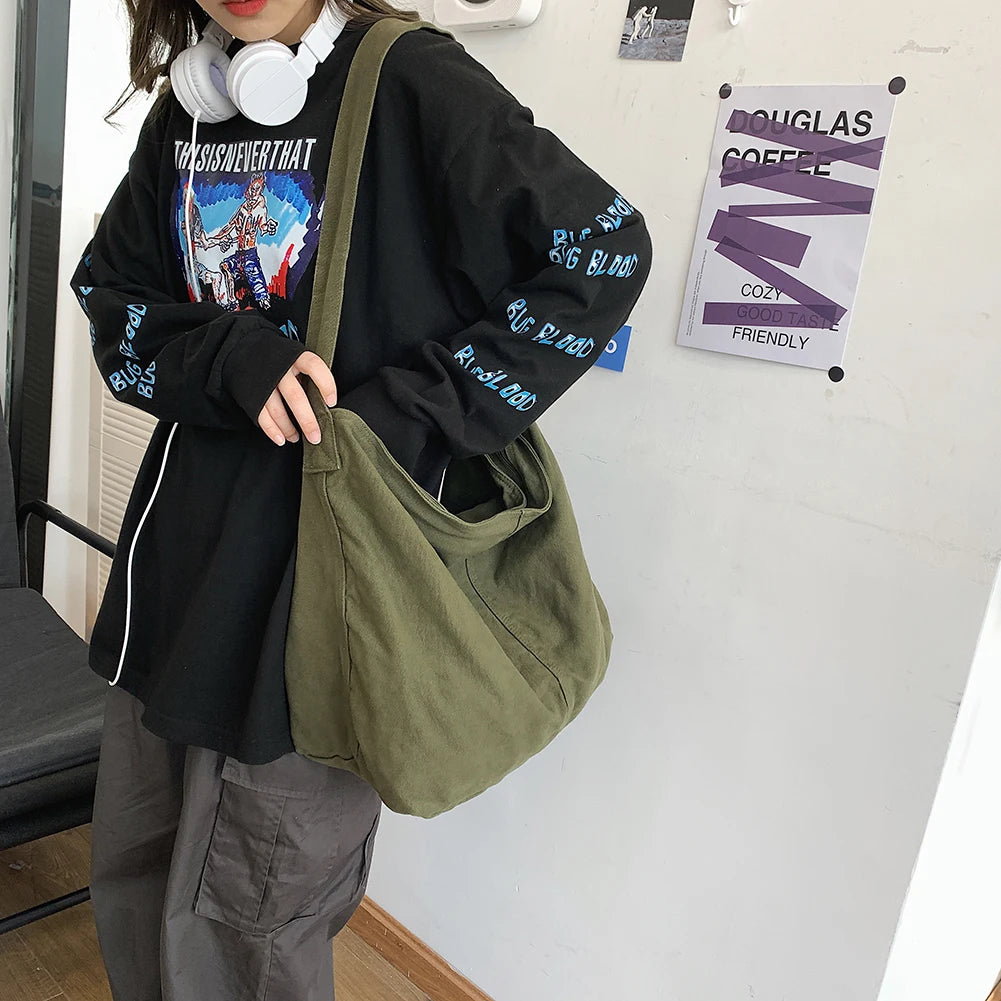Elevate your style with this Japanese Harajuku women shoulder bag. Featuring a solid retro design, this crossbody messenger handbag offers soft pockets and a large capacity for all your shopping needs.