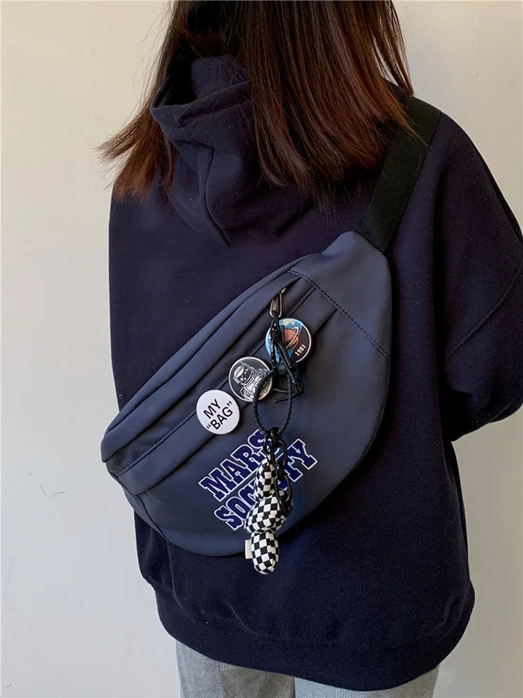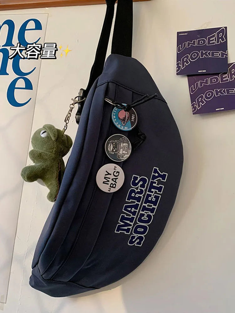Japanese Letter Streetwear Zipper Shoulder Bag