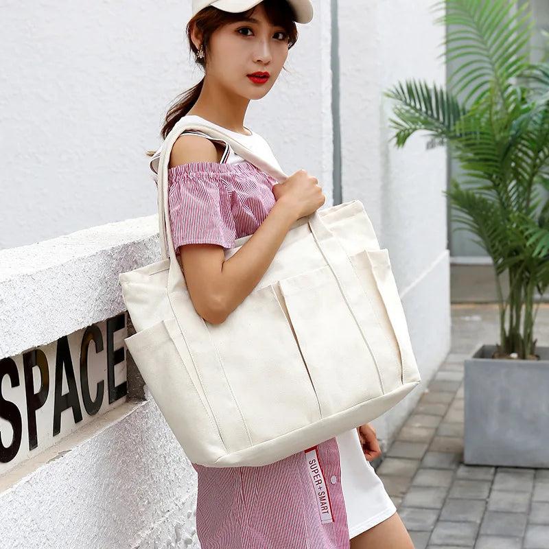 Japanese Style Canvas Shoulder Bag Large Capacity Tote Purse