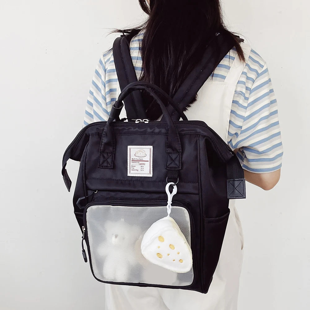 This Japanese style school bag is perfect for teenage girls. It can be used as a tote bag, backpack or shoulder bag. Made of durable nylon material, this bag is both stylish and practical.