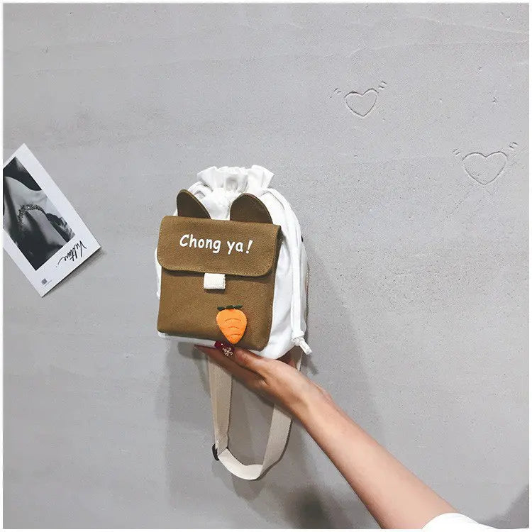 Japanese Women's Canvas Crossbody Bag Drawstring Student Small Bucket Bag