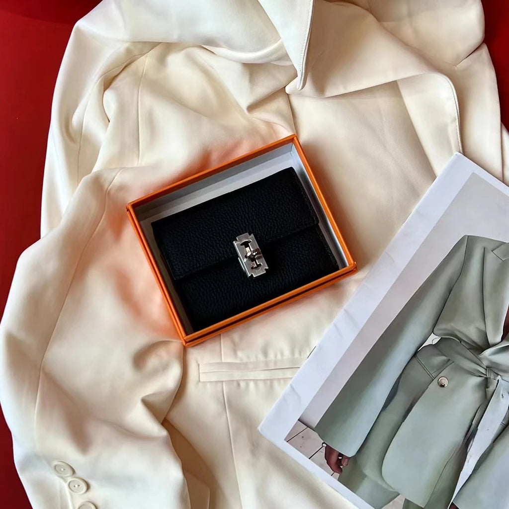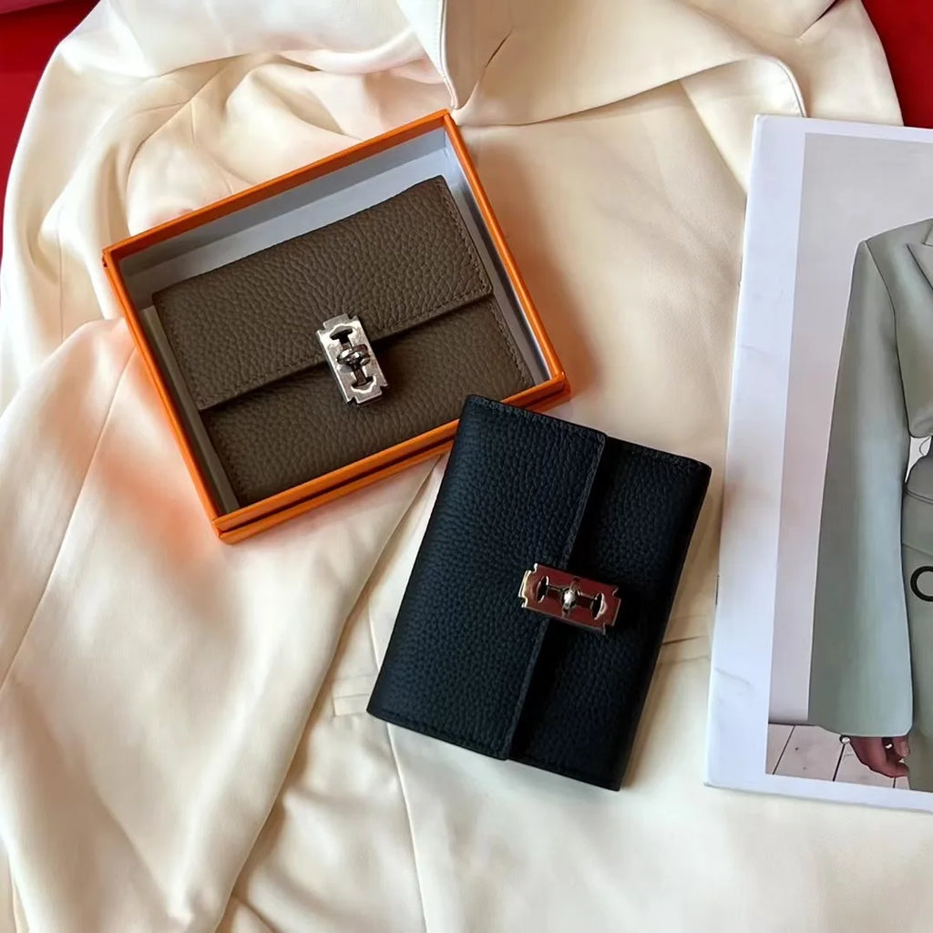 This genuine leather wallet is a stylish accessory for both men and women. It features a compact design that can easily fit in your pocket.