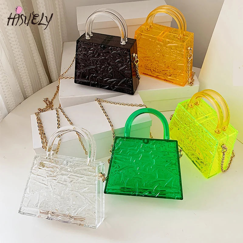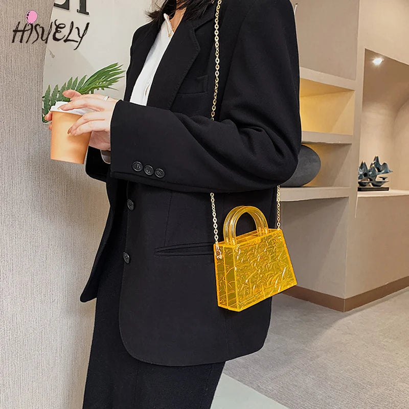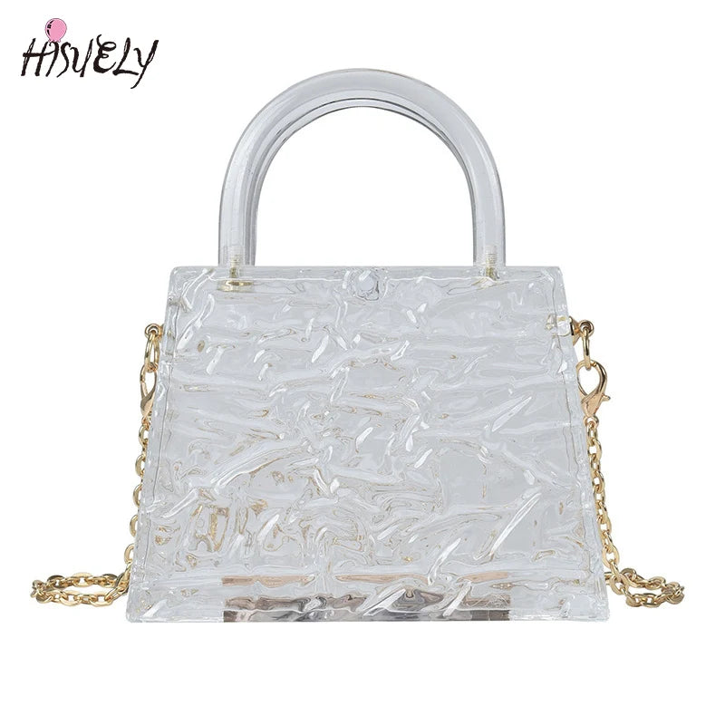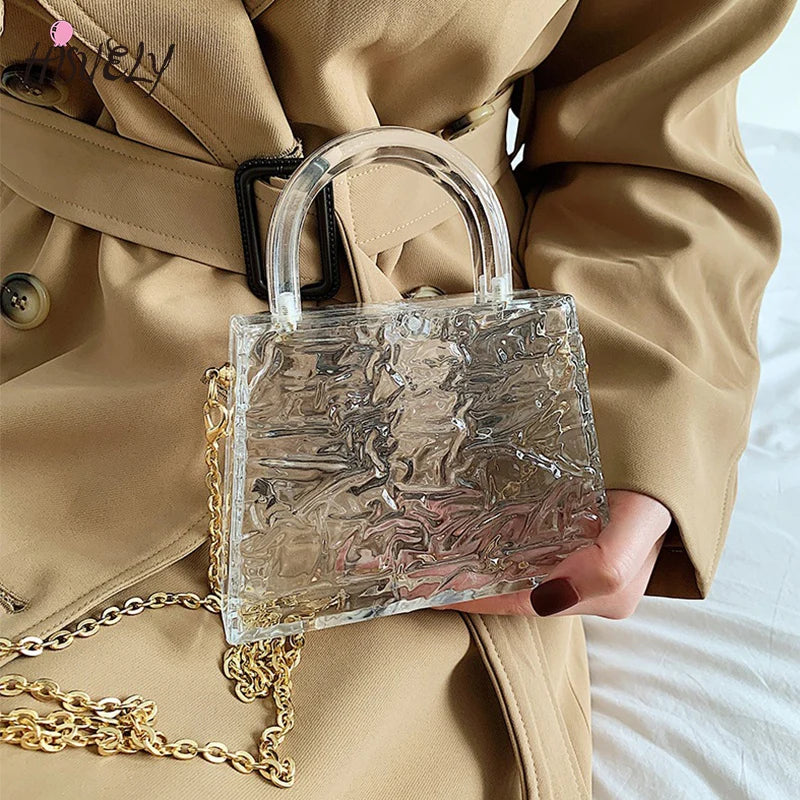 Stay stylish with this Ice Crack Transparent Lipstick Bag Chain Shoulder Bag. Ideal for women on the go.