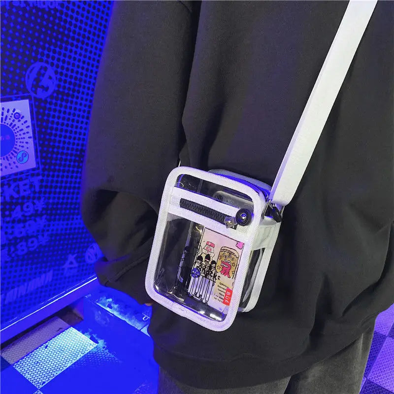 This stylish jelly messenger bag is perfect for both men and women. It features a transparent design, making it trendy and functional.